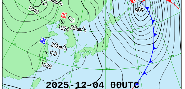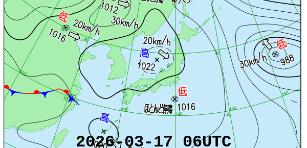 今日の天気図と似ている天気図の日を調べています。似ている度合の判断は気圧場の相関係数に依っています。気象庁が発表する天気図に合わせて毎日6時間毎に内容を更新しています。