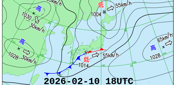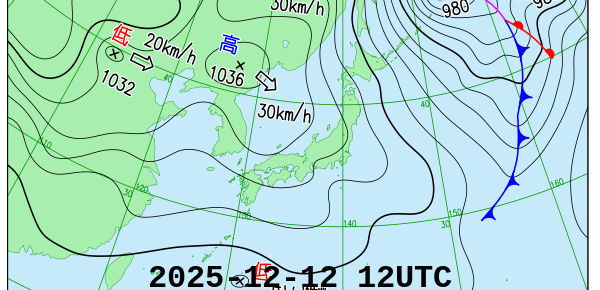 今日の天気図と似ている天気図の日を調べています。似ている度合の判断は気圧場の相関係数に依っています。気象庁が発表する天気図に合わせて毎日6時間毎に内容を更新しています。