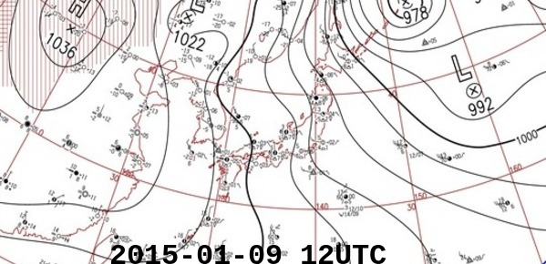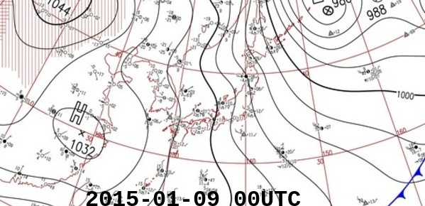 東日本から北日本(暴風雪、高波)<低気圧、冬型>