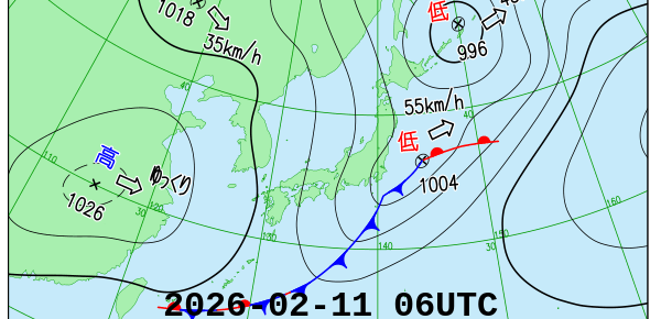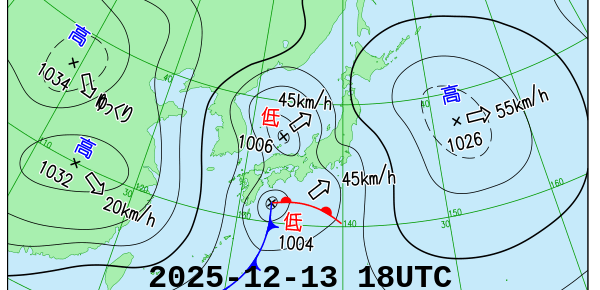 今日の天気図と似ている天気図の日を調べています。似ている度合の判断は気圧場の相関係数に依っています。気象庁が発表する天気図に合わせて毎日6時間毎に内容を更新しています。